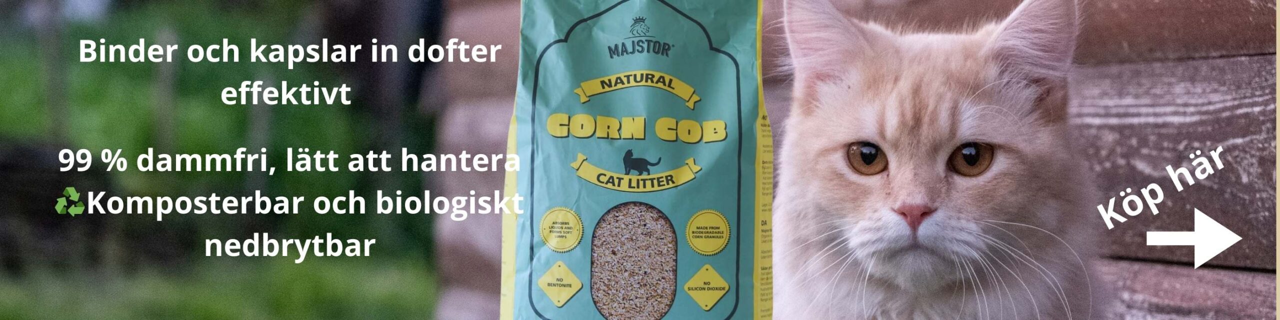 Till skillnad från vanlig kattsand består Majs-Strö av majskolv – som genomgått en patenterad process för att komprimera naturligt absorberande majs i koncentrerade granulat. Det gör att det bildas väl sammansatta klumpar direkt när din katt använder lådan, och majsgranulatet kapslar snabbt in lukten – så att du smidigt kan hålla kattlådan fräsch och göra din katt riktigt nöjd och glad.